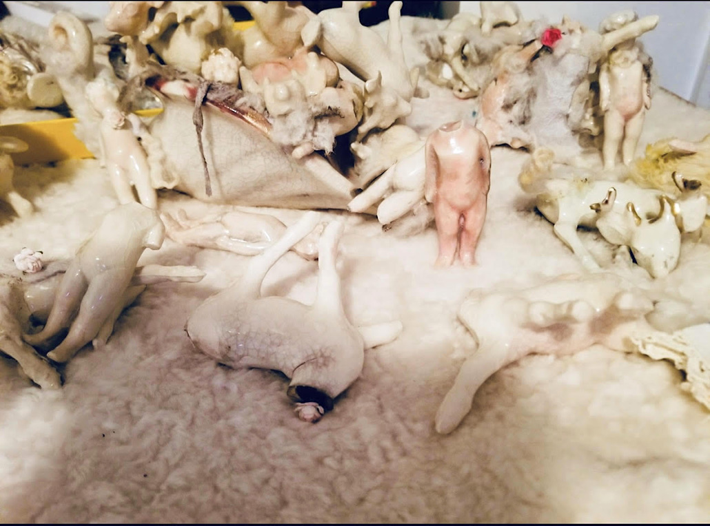 In the land of Arcadia Porcelain/ mixed media, sheep skin 2022