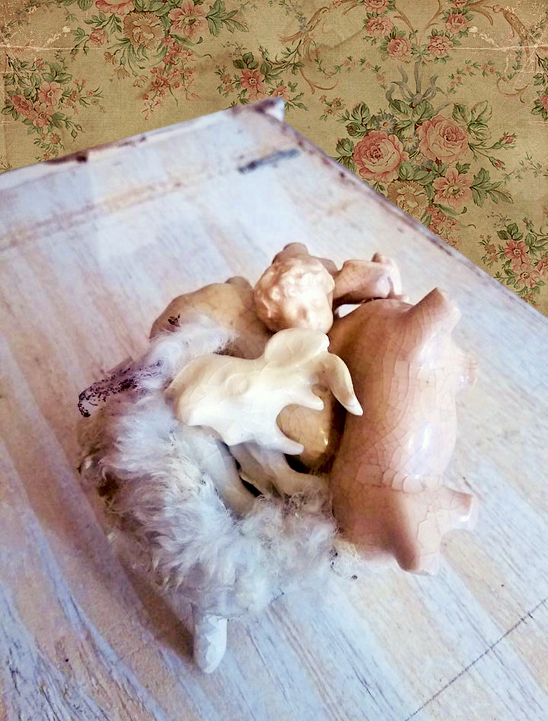 from the “Land of Arcadia” The Land of Arcadia”) Porcelain/ mixed media/ sheepskin 2022