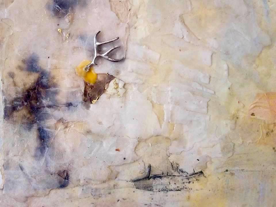 Drawing, mixed media, collage, encaustic. 18” x 20” 2016